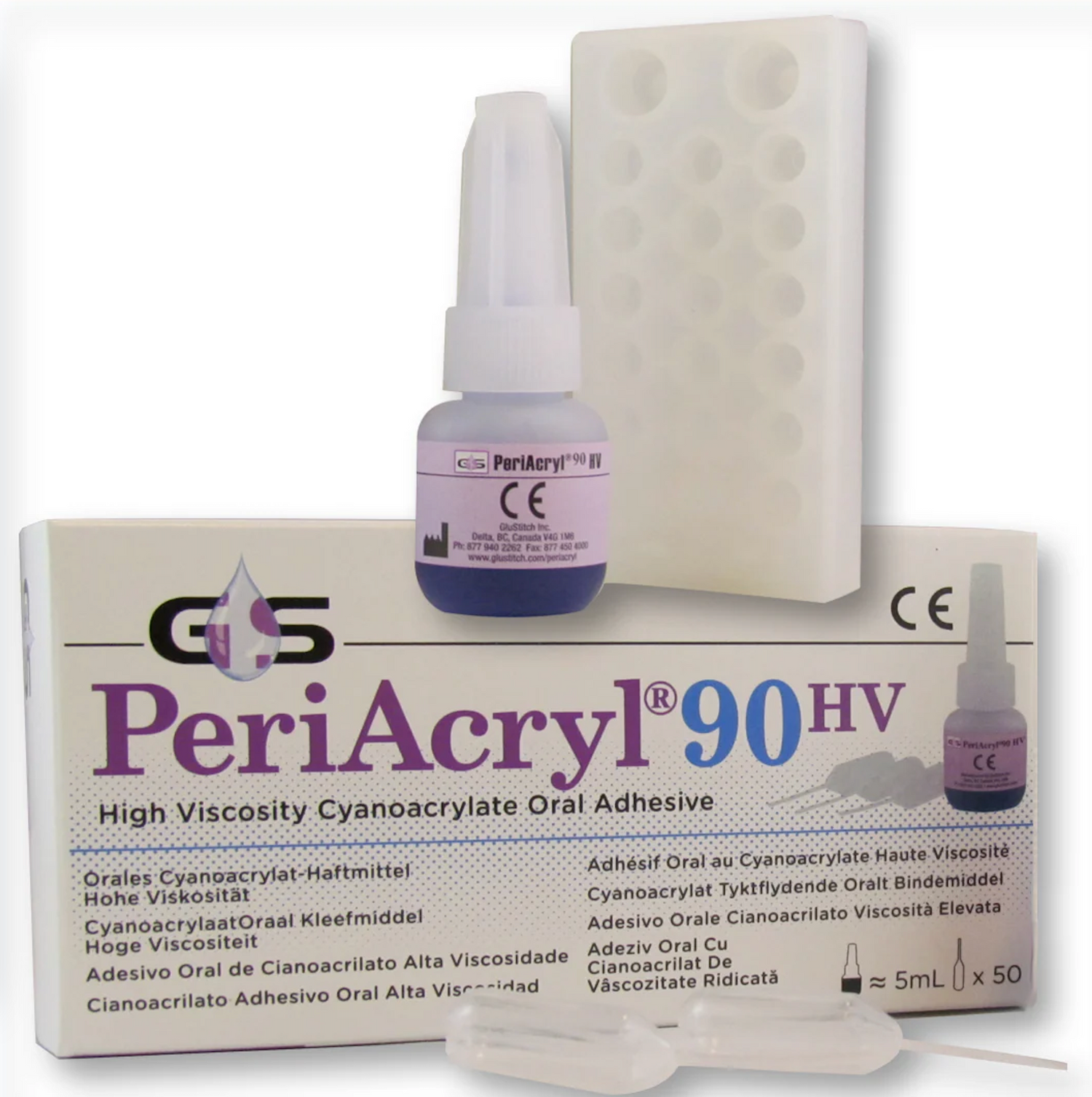 GluStitch designed PeriAcryl®90 High Viscosity, a thicker formulation to provide more control during application. This new product is 9 times thicker than the original PeriAcryl®90 formulation and has the same strength and durability characteristics that specialists have come to rely on. Both PeriAcryl®90 and PeriAcryl®90 High Viscosity are now available for sale world-wide.